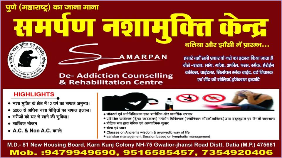 Nasha Mukti Kendra is one of the top-rated Rehabilitation centers in India. Our center is awarded as the best Nasha Mukti Kendra in India by the government of India. We have the facility of 500+ beds in our deaddiction center in Gwalior. We have a unique approach to treat alcohol and drug addiction in our rehab center in Gwalior. Our treatment process differ from person to person we have a dedicated team of expert doctors and counselor in our rehab center who help the person to get rid of addiction and come back to normal life. If you are looking for Nasha Mukti Kendra Gwalior Contact Number or Nasha Mukti Kendra Mobile Number please us at 735-492-0406 / 913-119-0455